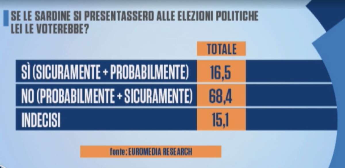 Sondaggio Euromedia: per le Sardine forchetta tra il 4 e il 12,5 per cento
