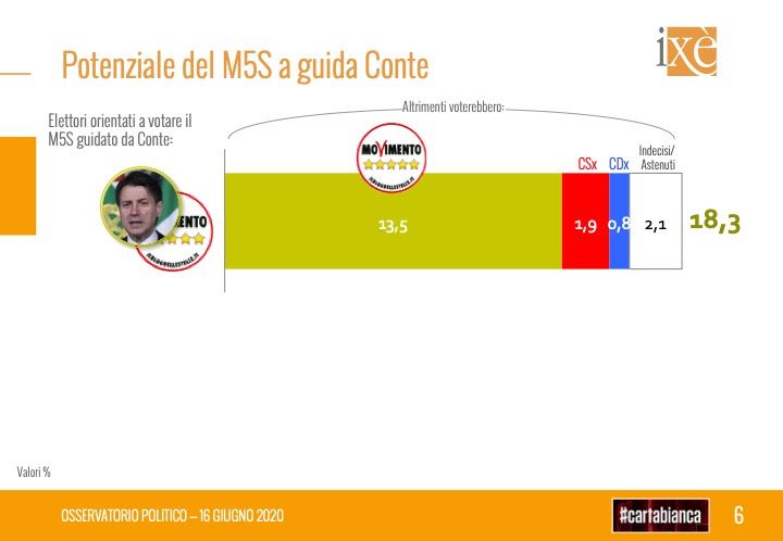 Sondaggio Ixè-Cartabianca: crollano Lega e Movimento 5 Stelle, boom di Italia Viva