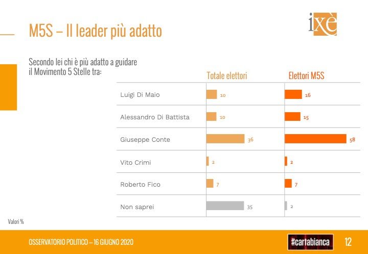 I PROBLEMI NEI 5 STELLE – L’elettorato 5 Stelle si spacca di fronte allo scontro sul congresso (il 44% è con Grillo, il 33% con Di Battista e uno su quattro non prende posizione), ma si ricompatta sull’indicazione di Conte come leader più adatto a guidare il movimento (58%). Seguono a notevole distanza Di Maio (16%) e Di Battista (15%).