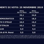 In calo Lega, Partito Democratico e Forza Italia, in salitastabile il Movimento 5Stelle, Fratelli d’Italia e Italia Viva. E’ questa la sintesi dell’ultimo sondaggio dell’istituto di ricerca Swg per La7 sulle intenzioni di voto degli italiani.