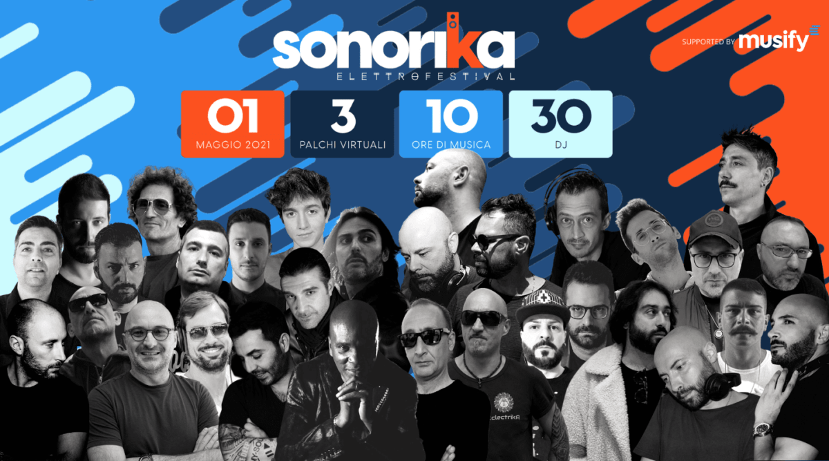 Trenta dj e producer si riuniranno virtualmente sabato 1 maggio per il Sonorika ElettroFestival, alternandosi nei tre palchi sul sito www.sonorika.com. Dieci ore di musica, dalle ore 12 alle 22, in cui ciascun artista avrà uno spazio di 60 minuti esibendosi dalle proprie case, dai propri studi, dai propri terrazzi, da Napoli a Miami, da Dublino a Milano e Roma, e ancora da Perugia, Agrigento, Caserta, Bari, Bologna, Avellino e Salerno.