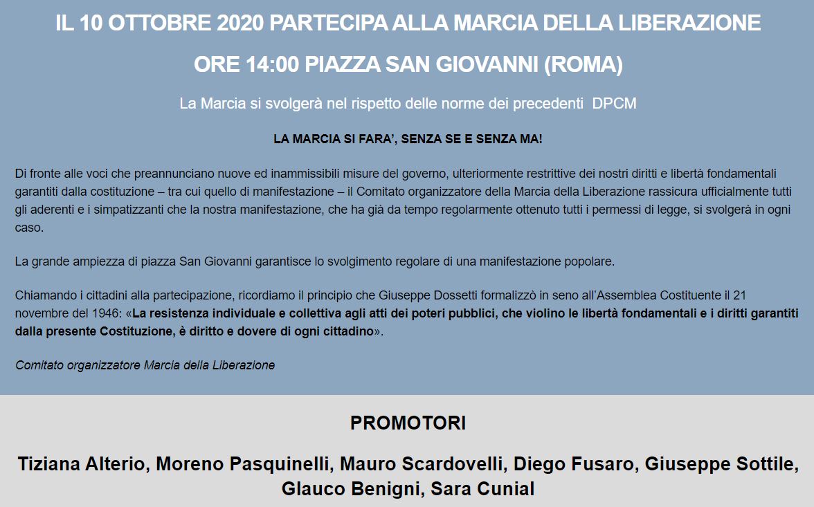 Nel manifesto anche la sottolineatura, quasi ironica considerato il parterre degli organizzatori, che la marcia avverrà nel rispetto dei Dpcm, dunque con distanziamento sociale e mascherine. Staremo a vedere…