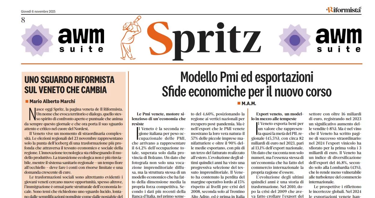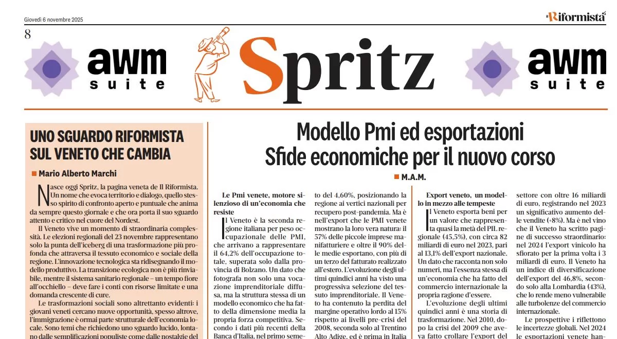 Nasce oggi Spritz, la pagina veneta de Il Riformista. Un nome che evoca territorio e dialogo, quello stesso spirito di confronto aperto e puntuale che anima da sempre questo giornale e che ora porta il suo sguardo attento e critico nel cuore del Nordest.