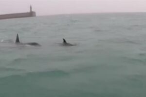 E’ diventato virale stamattina un video di un grosso squalo che nuotava nelle acque del porto di Pozzuoli. Nelle immagini il grosso pesce, che dovrebbe essere un longimanus, accompagnato da alcuni pesci “pulitori“, si muoveva accanto ad uno dei traghetti che tutti i giorni collegano il popoloso comune della provincia di Napoli con Ischia e Procida.