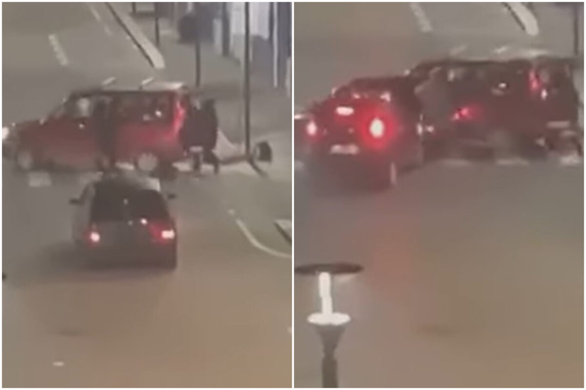 Poco dopo nelle immagini si vede arrivare una Fiat Panda a tutta velocità con all’interno la proprietaria, che si è resa conto di quanto stesse accadendo visionando, attraverso il cellulare, le telecamere di videosorveglianza del negozio, e un amico.