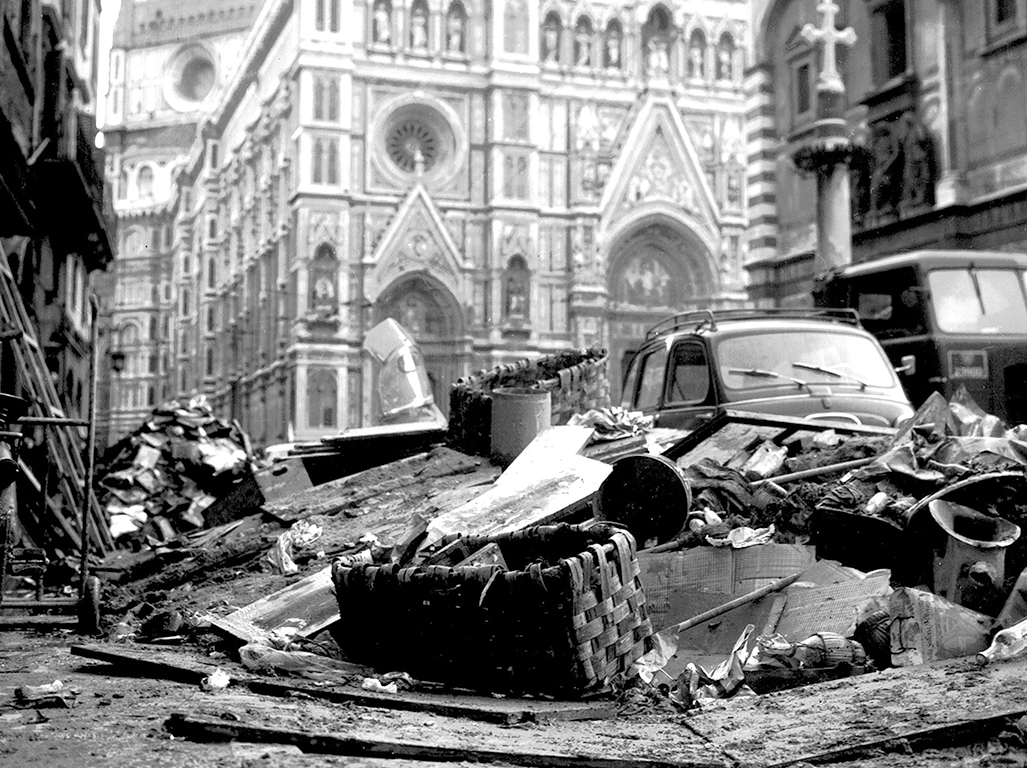 Nel 1966 era ancora presto, ma già tirava l’aria. L’Arno andò fuori dagli argini il quattro novembre e fu l’alluvione di Firenze. Un disastro che non ha mai avuto l’uguale. Migliaia di opere d’arte devastate, manoscritti impappati, fango ovunque e morti come per la guerra. La gente che si trovava in strada affogò e alcuni si aggrappavano ai mobili che galleggiavano. Secondo Vanna Vannuccini, grande giornalista ed amica, chi stava alla finestra somministrava consigli a chi lottava nei gorghi: “La batta i piedi!”, incitavano gli spettatori all’asciutto. Il disastro fu mondiale, corsero e migliaia a Firenze per salvare la città e anche in quella occasione si formò un movimento spontaneo di volontari detti “gli angeli del fango” e si capì che non esisteva nulla di ciò che noi oggi chiamiamo protezione civile e consideriamo un pubblico servizio. Non esisteva nulla, fango, pompieri e volontari e nottate di discussioni e anche d’amore nel fango. Il governo erogava mezzo milione di lire ai commercianti, ma il Crocefisso di Cimabue era perduto, salvo frammenti. Fu allora uno dei primi grandi eventi unificanti nella disgrazia, del nostro Paese, come lo saranno alcuni terremoti negli anni a venire.