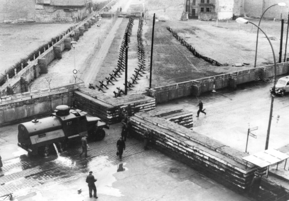Era stato Ulbricht più che i russi a volere quella muraglia. Il vecchio comunista sopravvissuto ai nazisti e alle purghe staliniane era molto fiero di essere il capo di una Germania finalmente comunista, ma si era reso conto che più di tre milioni di tedeschi se l’erano filata passando a Berlino ovest. La Germania era stata divisa in quattro zone di occupazione: la più grande, quella sovietica, e poi quelle americana inglese e francese. Le zone occidentali erano state subito riunite in un’unica Germania federale che avrà come sua capitale Bonn, fino alla caduta del muro e il ritorno di Berlino capitale con Kohl. Ma la vecchia capitale declassata e occupata galleggiava nella Germania comunista e metà di essa era sotto il comando sovietico mentre l’altra metà era protetta dalle guarnigioni americane, francesi e inglesi. Erano funzionanti alcuni punti di passaggio fra le due metà del muro dove i berlinesi potevano transitare liberamente: il più famoso fu il checkpoint Charlie, sorvegliato dai carri armati americani, il portale da cui era possibile sparire dal mondo comunista e riapparire in quello occidentale.