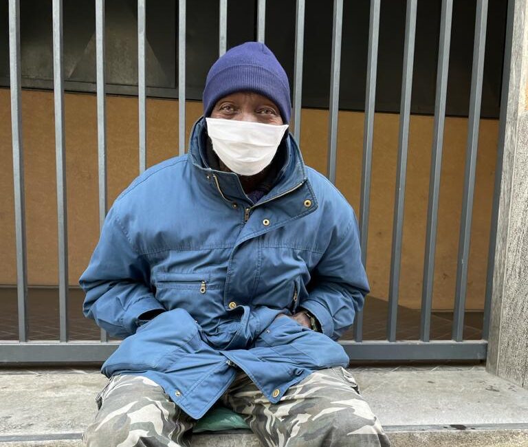 Mbaye è in Italia dal 1987. Viene dal Senegal. Ora ha settantadue anni. Vantava qualche parvenza di proprietà, fino a ieri: alcuni berretti, qualche ombrello, una mezza serqua di cavetti usb, otto confezioni di mascherine, dei sacchetti di plastica per la cacca dei cani e quattro tagliaunghie. Si sarebbe liberato a poco a poco di questi possedimenti, cedendoli per qualche euro ai passanti che ormai lo conoscono perché lui sta sempre lì, sotto quel cornicione che lo ripara dalla pioggia e durante l’estate dal sole viscido di Milano. Adesso è ancora lì.