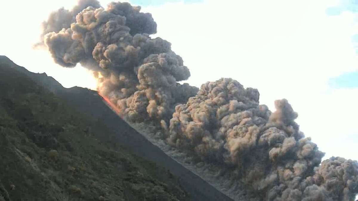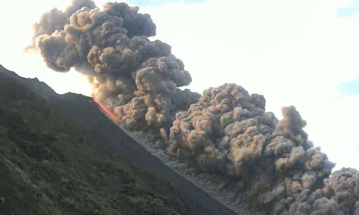 Già dalle prime ore del mattino lo Stromboli aveva fatto sentire la sua voce. Dalle 9:23 di stamane una imponente colata lavica, accompagnata da denso fumo, visibile anche dalla frazione di Ginostra ha iniziato a cadere dal cratere nord e attraversando la Sciara del fuoco verso linea di costa. In poco tempo ha raggiunto il mare. Il suo contatto con l’acqua ha sollevato intense nubi di vapore. Il flusso piroclastico originario ha dato seguito da altri piccoli flussi.