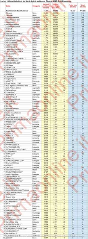 Questa la classifica di Comscore pubblicata ieri su Prima Comunicazione: