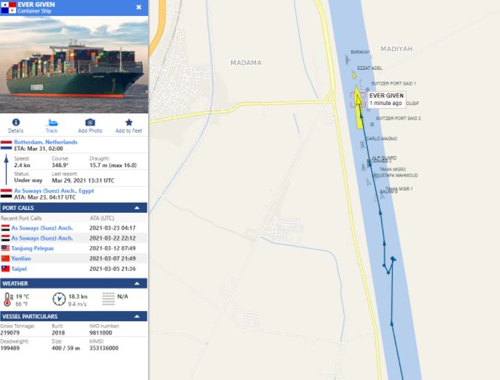 La squadra di soccorso sta trascinando la nave cargo Ever Given verso il Grande Lago Amaro, un ampio specchio d’acqua a metà strada tra l’estremità nord e sud del canale di Suez, dove l’imbarcazione sarà sottoposta a un’ispezione tecnica. I dati satellitari di MarineTraffic.com hanno confermato che la Ever Given si sta allontanando dalla costa verso il centro del canale.