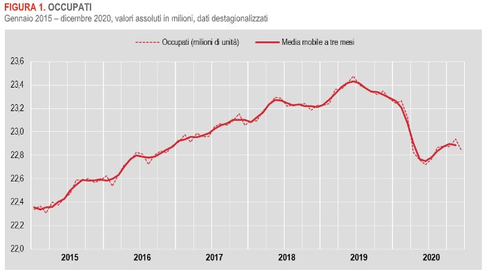 Nonostante il ricorso enorme alla cassa integrazione e al blocco dei licenziamenti più volte prorogato, con la promessa da parte del Governo che nessuno avrebbe perso il posto di lavoro causa Covid-19, il 2020 si chiude con 444mila occupati in meno in Italia, mentre l’attenuazione del calo che vi era stata luglio-novembre è di fatto già finita. A mettere nero su bianco i numeri della crisi del lavoro è l’Istat nell’ultimo report pubblico.