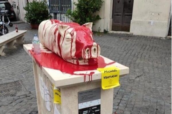 Imbrattata la statua della porchetta a Trastevere. Il comune pensa alla rimozione