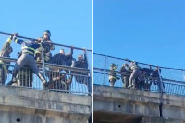 Si era arrampicato su un cavalcavia, pensando a lungo all’insano gesto, ma poi l’intervento provvidenziale della polizia, e di un agente…
