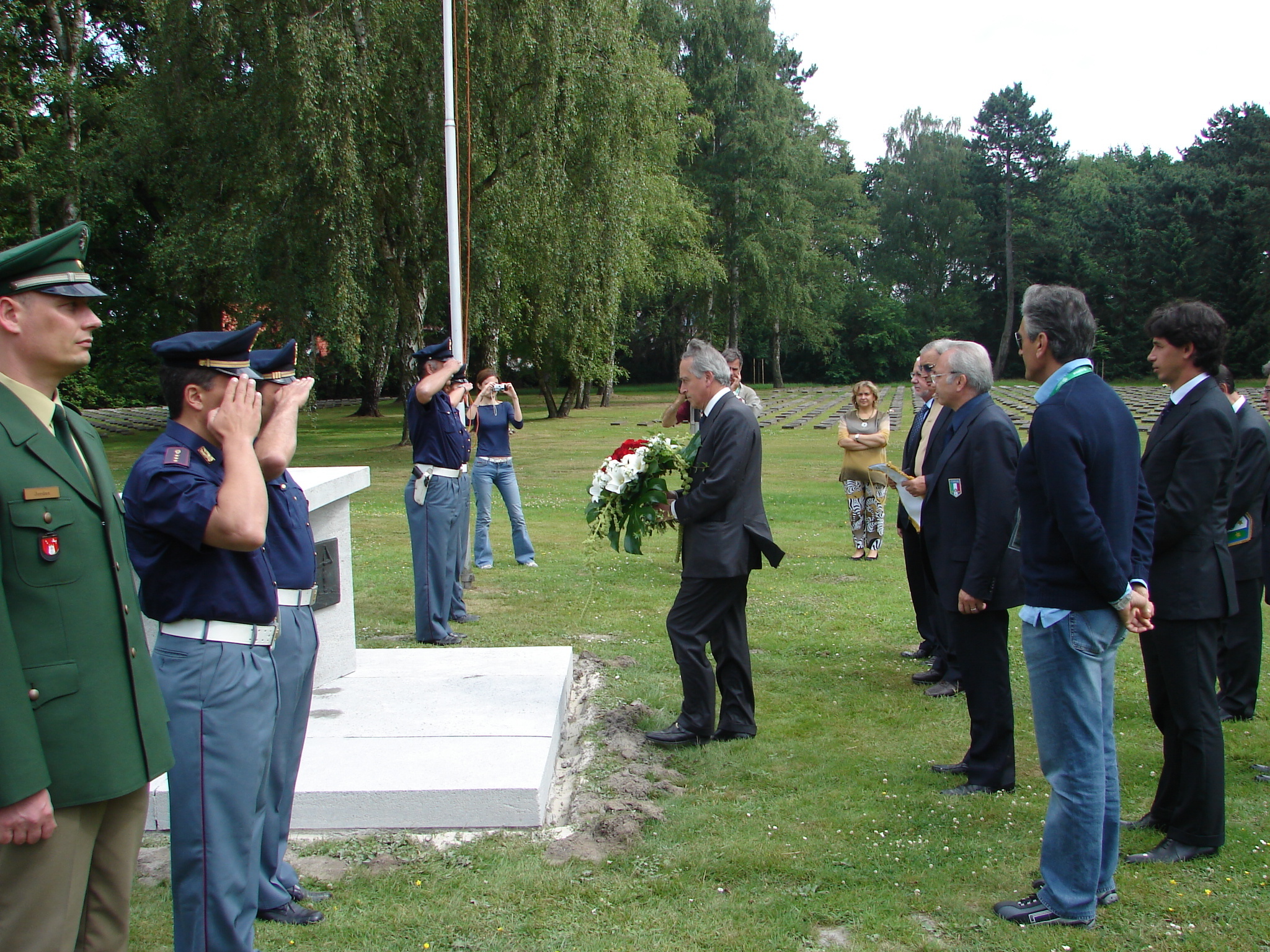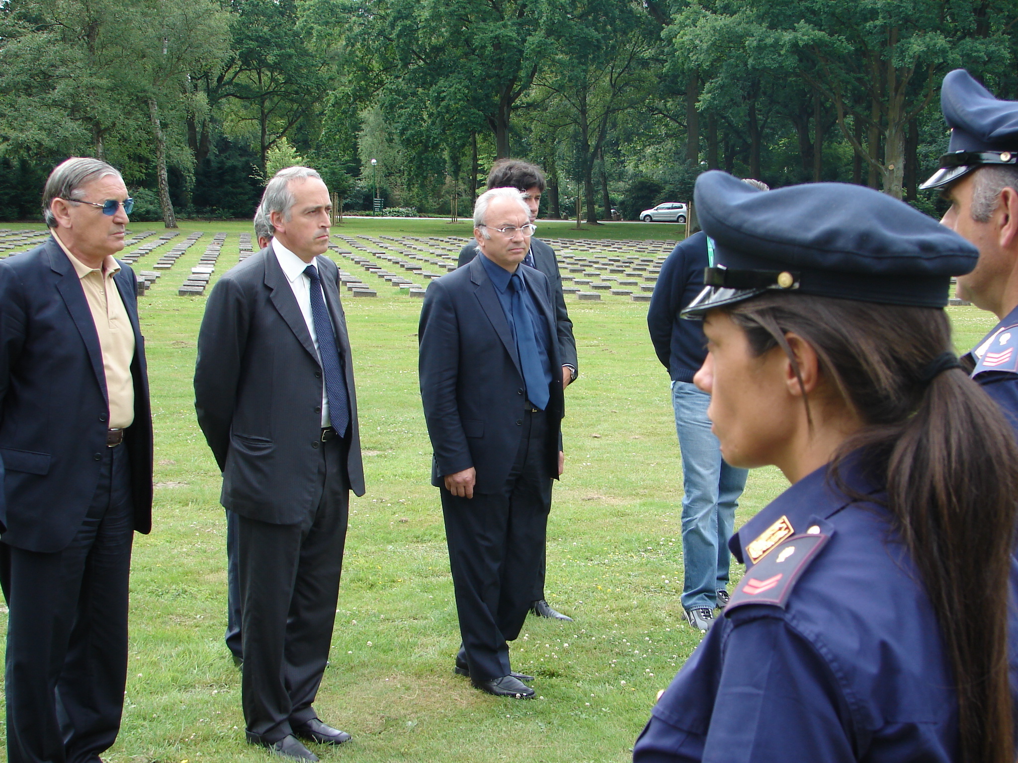 Giancarlo Abete, Gabriele Gravina, Demetrio Albertini, Gigi Riva, Antonello Valentini, Gianni Nave e alcuni poliziotti italiani in uniforme portarono un cuscino di fiori al Cimitero Militare italiano d’Onore di Amburgo dove sono custodite le spoglie di 5.839 italiani prigionieri di guerra, internati e lavoratori civili, deceduti dall’inizio della Seconda Guerra Mondiale fino al 15 aprile 1946, traslati dai territori dello Schlewig-Holstein, Bassa Sassonia, Amburgo, Brema, Hannover e della Westfalia. Quel giorno, nel vedere affiancati i poliziotti tedeschi e quelli Italiani in divisa, mentre il Tricolore italiano veniva issato sul pennone provai una delle emozioni più forti che si possono immaginare. E fu grande e gratificante anche l’impegno per convincere le Autorità tedesche a far partecipare anche i poliziotti tedeschi in divisa alla cerimonia di alzabandiera in omaggio ai nostri soldati catturati e deportati in Germania dall’esercito tedesco.