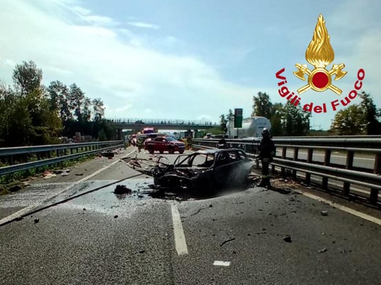 Per la bambina di 5 anni, invece, non c’è stato niente da fare. La piccola è stata sbalzata dall’abitacolo ed è morta sul colpo. L’incidente ha provocato un boato. Fiamme altissime sono divampate dall’automobile a fuoco. Si era capito da subito dell’alta gravità dell’incidente.