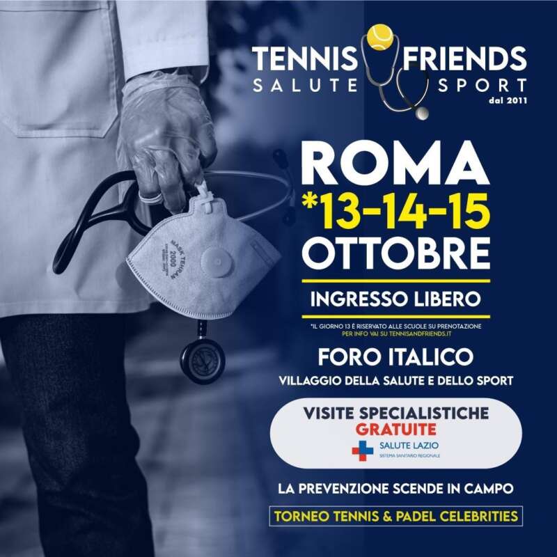Parte oggi ‘Tennis & Friends – Salute e Sport’, che fino al 15 ottobre, al Foro Italico di Roma, vuole intercettare i giovani, per informarli scientificamente sui rischi della mancata prevenzione e sottoporsi a screening gratuiti, coordinati dalla Asl Roma 1, in collaborazione con Salute Lazio. L’edizione di quest’anno (“La prevenzione è giovane”) afferma infatti che proprio dai giovani bisogna partire. Si comincia stamattina, con l’apertura riservata agli studenti delle scuole primarie e secondarie della Capitale e della Regione Lazio che verranno accompagnati attraverso percorsi educativi sui temi di salute e sport.