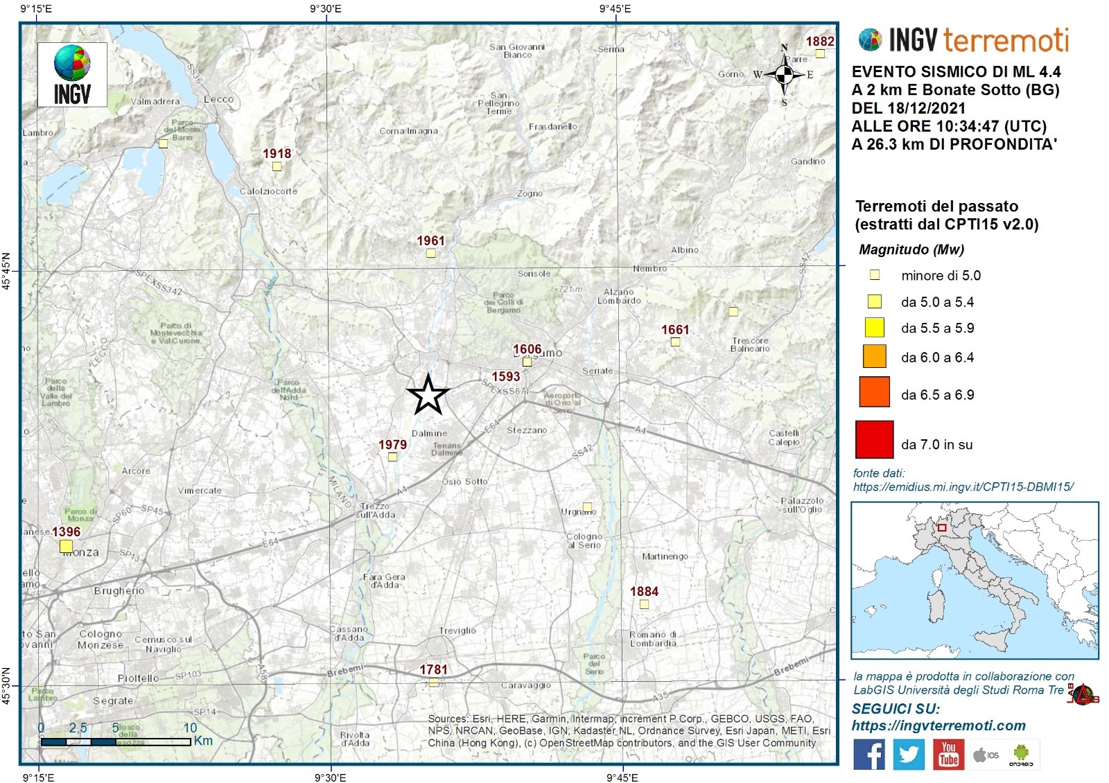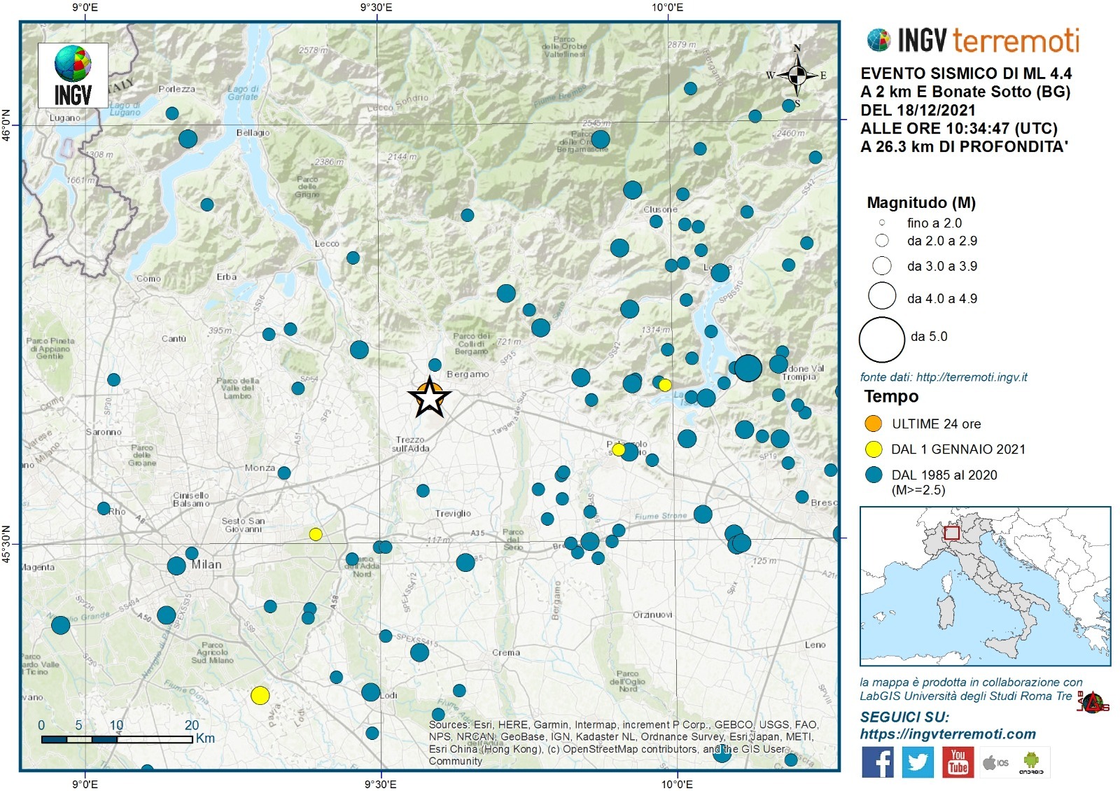 [DATI #RIVISTI] #terremoto ML 4.4 ore 11:34 IT del 18-12-2021 a 2 km E Bonate Sotto (BG) Prof=26Km #INGV_29226401 https://t.co/SMyB3vP3yk