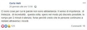 La sua ex compagna Carla Velli, ex corteggiatrice di Francesco Arca prima di salire sul trono della nota trasmissione di Maria De Filippi, con un breve ma toccante post pubblicato su Facebook esprime il proprio dolore e l’incredulità per la tragedia avvenuta: “Ci sono cose per cui le parole non sono abbastanza. Il senso di impotenza.. di tristezza.. di incredulità.. questa volta, spero nel modo più discreto possibile, lo rompo per 2 minuti il silenzio; forse perché credo che le persone continuino a restare attraverso i ricordi”. Infatti solo nel 2017 era nato il figlio della coppia, anche se la coppia aveva deciso di separarsi avevano vissuto una bella storia d’amore, coronata dalla nascita del loro bambino. Addirittura i due avrebbero dovuto convolare a nozze tra il 2017 e il 2018, ma con il procedere del rapporto la loro love story naufragò anche se i due erano rimasti in contatto ed erano legati dall’amore per il figlio.