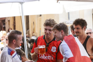I cancelli dell’Olimpico si sono aperti alle 18 per accogliere, ma già qualche ora prima, alle 16, i primi supporter si sono avvicinati allo stadio, eludendo il caldo di questa giornata con qualche bicchiere di birra.