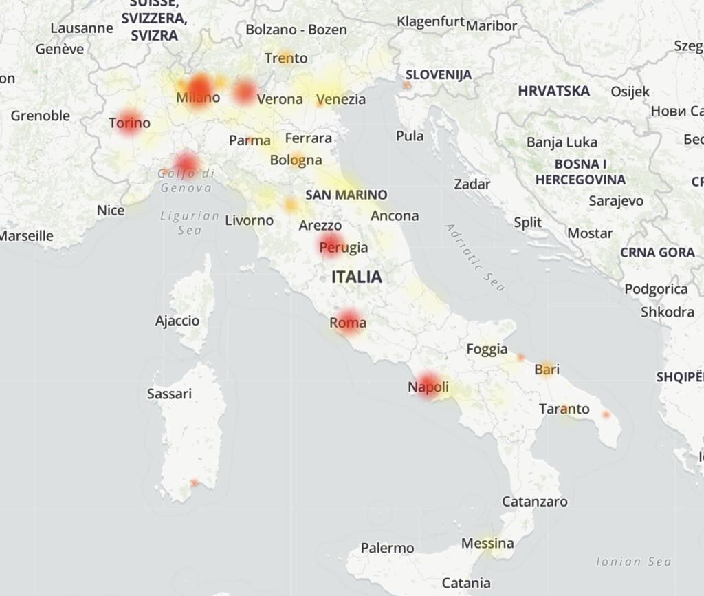 Problemi non da poco: sono migliaia infatti gli italiani che questa mattina si sono connessi da casa per lavorare in smartworking. I problemi di connessione nello Stivale sono evidenziati chiaramente dalla mappa mostrata dal portale Downdetector, noto per raccogliere le segnalazioni sui malfunzionamenti di operatori telefonici, siti e applicazioni. Le parti in rosso evidenziano i luoghi in cui sono maggiori le segnalazioni di malfunzionamenti.