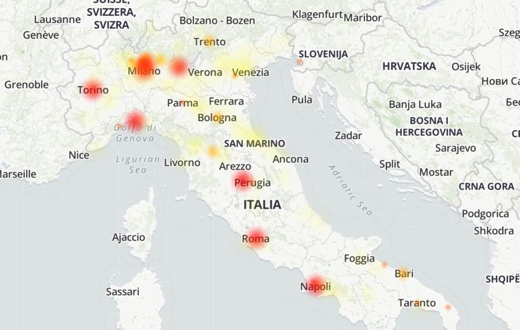 Problemi non da poco: sono migliaia infatti gli italiani che questa mattina si sono connessi da casa per lavorare in smartworking. I problemi di connessione nello Stivale sono evidenziati chiaramente dalla mappa mostrata dal portale Downdetector, noto per raccogliere le segnalazioni sui malfunzionamenti di operatori telefonici, siti e applicazioni. Le parti in rosso evidenziano i luoghi in cui sono maggiori le segnalazioni di malfunzionamenti.