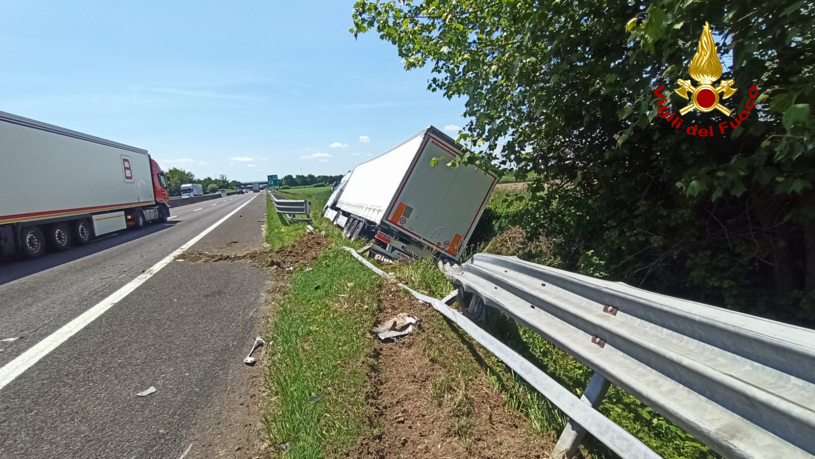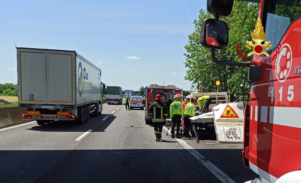 Un mezzo pesante, secondo quanto ricostruito, ha tamponato un furgone della segnaletica: quest’ultimo era fermo sulla destra in corsia di emergenza quando è stato tamponato dal tir che per l’impatto è finito fuori della sede stradale.