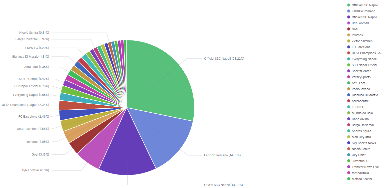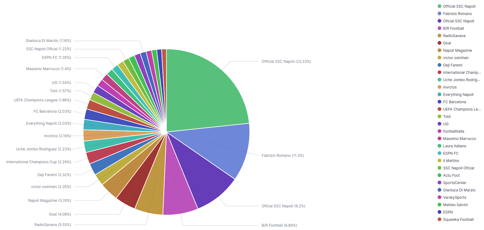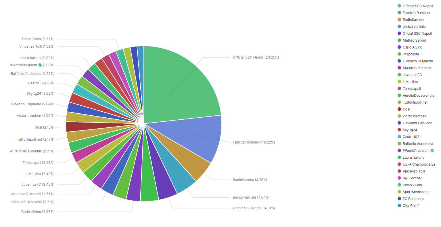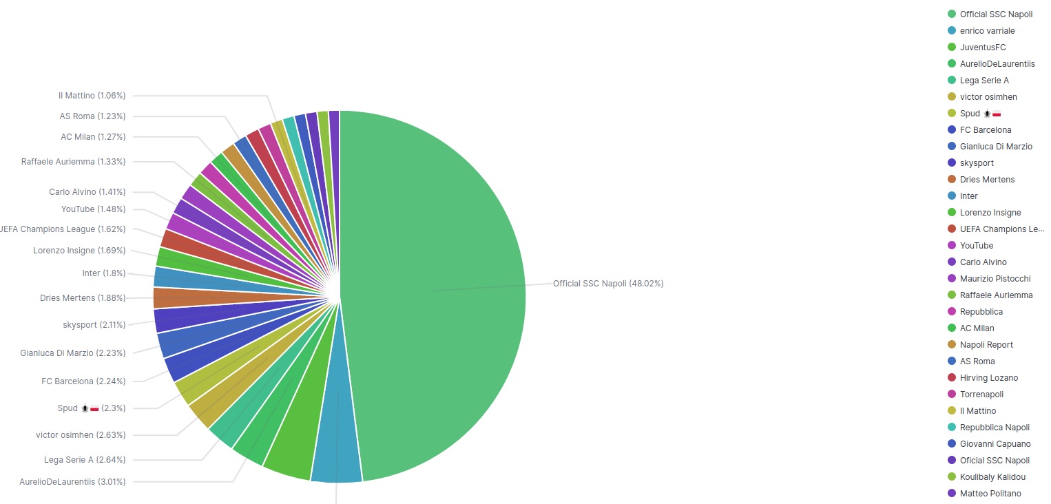 Chi sono stati gli utenti più menzionati dagli abitanti di Partenope sui social? Ssc Napoli continua a macinare primati. E’ il team di De Laurentiis a trovare maggiori menzioni degli utenti, seguito dal giornalista Rai Enrico Varriale per poi, a sorpresa, vedere al terzo posto la Juventus prim’ancora del Presidente De Laurentiis appena fuori dal podio. Osimhen resta il giocatore più considerato, più dello stesso Mertens che i napoletani adorano quanto il compianto Diego. Insigne invece è al terzo posto della classifica tesserati azzurri. Grande successo per il profilo @Spud_FNVPN che anima quotidianamente gli utenti interessati al calciomercato, più citato di Gianluca di Marzio per quanto riguarda il Napoli. Carlo Alvino, Maurizio Pistocchi e Raffaele Auriemma sono vicini nel bel mezzo della classifica. In fondo a tutti, TorreNapoli e sorprende al 29°posto Kalidou Koulibaly.