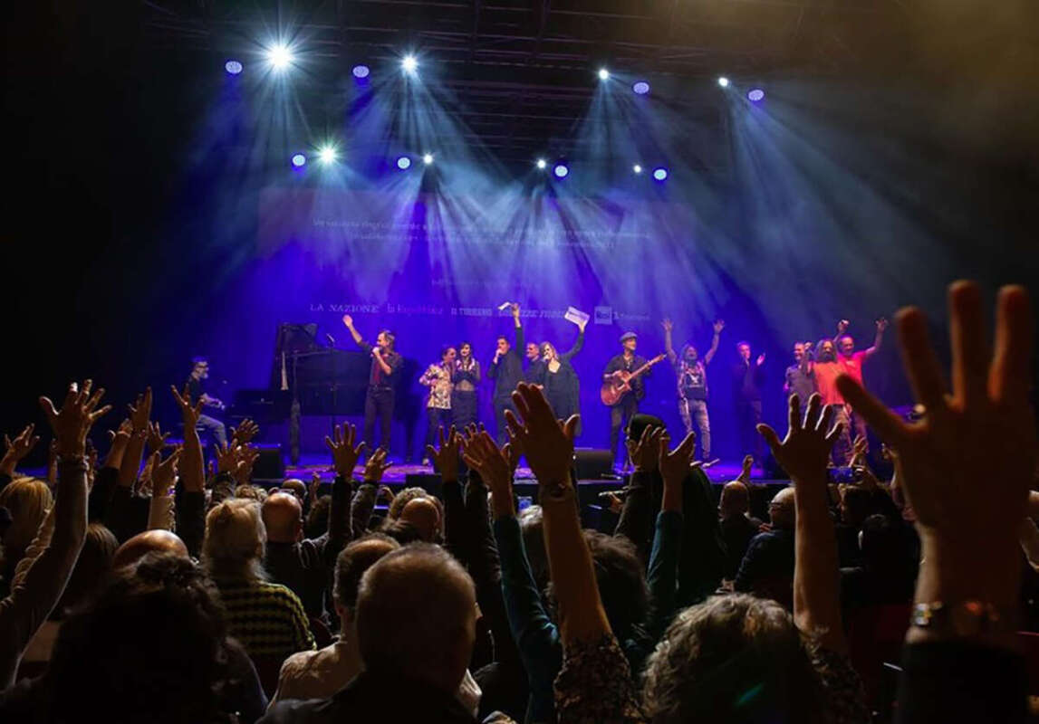 “Il 68% del territorio è stato completamente stravolto”, ha ricordato Massini incalzando il Governo: “Qua sono stati promessi soldi per la ricostruzione come in Romagna ed è sempre importante per onestà, tra esseri umani, che i patti vengano mantenuti. È la serata dell’orgoglio toscano ed è una serata particolare. Stasera noi non ricordiamo città d’arte, ricordiamo Campi Bisenzio, Montale, Agliana, Prato, luoghi dove magari non si va in vacanza ma dove ci sono stati danni. Queste popolazioni non possono essere dimenticate solo perché qui non c’è piazza del Campo o Palazzo Vecchio”. Al Tuscany Hall erano presenti il Presidente della Regione, Eugenio Giani, il Presidente del Consiglio regionale, Antonio Mazzeo, il sindaco metropolitano Dario Nardella e i primi cittadini di Marradi e Campi Bisenzio, Tommaso Triberti e Andrea Tagliaferri. Per una volta però sono stati gli artisti a tenere banco: oltre ai promotori e a Gianni Morandi, hanno contribuito Marco Masini, Paolo Jannacci, Peppe Voltarelli, Paola Turci, Dolcenera, Irene Grandi, Francesco Gabbani e la Bandabardò. I videomessaggi di Vasco Rossi, Fabio Fazio e di Elio, che ha annunciato il suo impegno attivo per la ricostruzione della biblioteca Tiziano Terzani di Campi Bisenzio, hanno arricchito la serata.