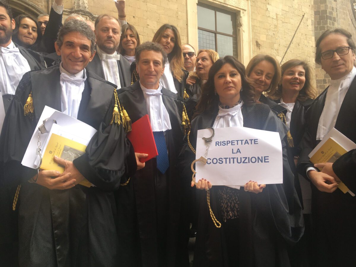 Con il patrocinio del Consiglio dell’Ordine degli avvocati di Napoli e quelli di Torre Annunziata e Napoli nord, gli avvocati Alessandra Cangiano e Raffaele De Cicco con i colleghi del gruppo Sostituzioni Penali Covid ha lanciato l’iniziativa di un flash-mob che attraverso i canali social sta raccogliendo numerose adesioni. Gli avvocati si sono dati appuntamento per venerdì alle 10.30 all’ingresso dei rispettivi tribunali di appartenenza. Questa volta non sarà un flash-mob da remoto, ma gli avvocati saranno fisicamente presenti davanti ai palazzi di giustizia, distanziati e con guanti e mascherine, e in segno di protesta consegneranno la toga ai presidenti dei propri ordini.