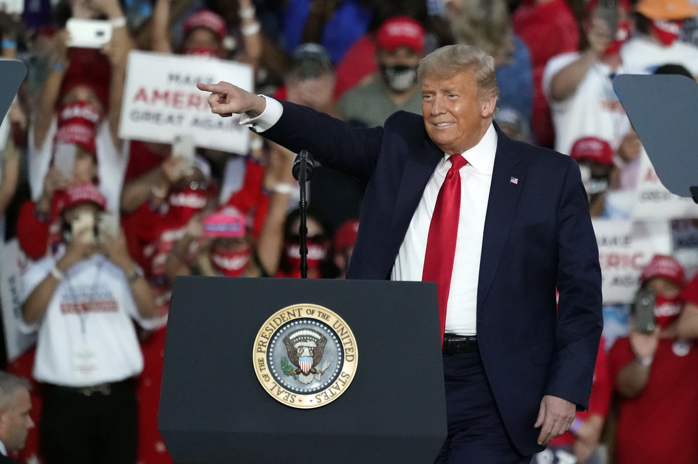 Donald Trump non lascia, anzi, raddoppia. Il presidente degli Stati Uniti è tornato in campagna elettorale tenendo la sua prima manifestazione da quando ha contratto il coronavirus. L’inquilino della Casa Bianca è salito sul palco a Sanford, in Florida, e ha dichiarato di essere in buona salute, dicendo che si sentiva “forte” e abbastanza bene, ma anche abbastanza libero dal contagio da immergersi nella folla “per baciare i ragazzi e le belle donne”.