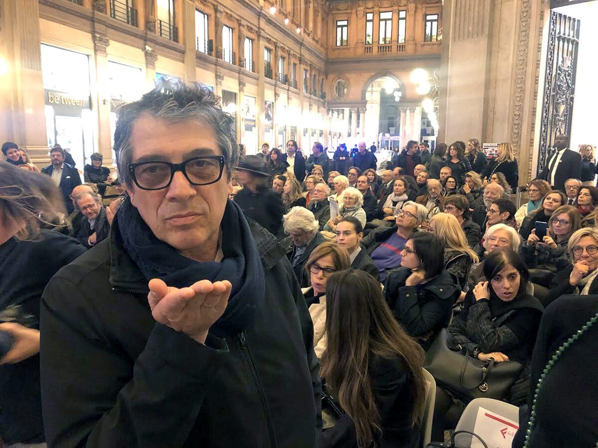 Roma, Galleria “Alberto Sordi”. È l’attesa presentazione del nuovo romanzo di Sandro Veronesi. “Capolavoro!”, assicurano, nero su bianco, critici e amici che lo hanno già letto, recensito, piazzato sui leggii in salotto. Dell’autore, in ogni caso, fin dagli esordi, trent’anni fa, è stato detto che si tratti del “nuovo Moravia” (sic). Se già il suo Caos calmo era stato premiato con lo Strega, sembra adesso che quest’ultima prova, Il Colibrì (La nave di Teseo) rappresenti una stella polare nei palmarès della considerazione letteraria, quasi un romanzo oltre il quale la narrativa cessa ogni necessaria ulteriore funzione. Parole forti, eppure dette. Se così non fosse, lì alla libreria Feltrinelli, non potremmo annoverare “Il Salutatore” fra i molti convenuti, e neppure i leggendari gemelli Panimolle. Sismografi viventi del successo altrui. Il primo dei citati, Kristian Paoloni, si distingue perché «saluta i vip insieme a Grandi Personaggi dello Star System dello Spettacolo del mondo Sportivo e non solo!!!» (sic). Nel suo bottino brillano il Dalai Lama, Johnny Depp, Dustin Hoffman, oltre a Ivana Spagna e Gianni Togni. Anche Veronesi, in un pomeriggio di novembre, la Colonna Antonina oltre i vetri che s’affacciano sul Corso, si appresta a raggiungere la prestigiosa quadreria. Nel parterre, in attesa della parola dei relatori, paziente, ritroviamo Antonella Amendola, già compagna del pittore Tano Festa, e intanto, avanza, emozionata come mustelide, la scrittrice Teresa Ciabatti, insieme all’attore Sergio Rubini è la maestra di cerimonia, presentatrice. Il pubblico, conquistatore dei posti a sedere, almeno inizialmente, garantisce un’ampia rappresentanza di anziani, che sempre brillano a eventi culturali e vernissage, peccato, pensano, che solo questi ultimi abbiano la grazia di un buffet. Non mancano i fotografi, è pronto Luciano Di Bacco, incursore per conto di Dagospia, c’è Marcellino Radogna, baffi e volto d’ufficiale di cavalleria d’osservanza monarchica, perfetto per pellicole quali Vogliamo i colonnelli.