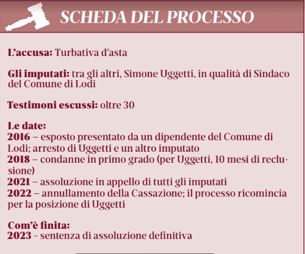 È il 2 maggio del 2016 quando l’allora sindaco della città di Lodi, Simone Uggetti, viene arrestato in applicazione di un’ordinanza di custodia cautelare emessa dal Giudice per le indagini preliminari del Tribunale di Lodi. È il 20 giugno 2023 quando Simone Uggetti, ormai dimentico della politica, viene assolto, dopo 7 anni e 4 giudizi, dalla Corte di Appello di Milano per particolare tenuità del fatto. L’inchiesta nasce a seguito di un esposto depositato nel mese di marzo 2016 da una funzionaria del Comune. Il sindaco viene accusato di avere, in concorso con altri, influito indebitamente su un bando di gara per l’aggiudicazione della gestione e manutenzione di due piscine comunali, con una base d’asta di soli 5.000 euro.
