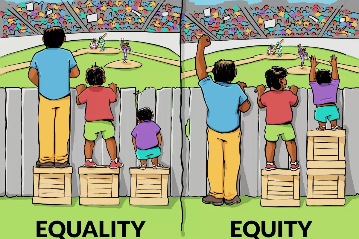 Sui social network, alcune immagini catturano sempre l’attenzione e ci strappano un facile like. “I ragazzi sulle scatole”, anche nota come “Uguaglianza vs. Equità” di autore anonimo, ne è un esempio emblematico. Due immagini affiancate: nella prima, tre persone di altezze diverse – un adulto, un bambino e un bambino piccolo – stanno su scatole della stessa altezza per guardare una partita oltre una recinzione. Il più piccolo, però, non riesce comunque a vedere. Nella seconda immagine, le scatole sono distribuite in modo che ciascuno abbia il supporto necessario: l’adulto senza scatola, il bambino con una, il più piccolo con due. Così, tutti possono vedere oltre la recinzione. Un messaggio semplice e diretto: W l’equità!
