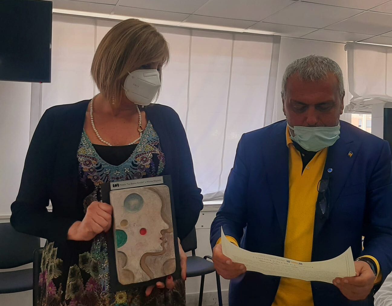 Nella foto il direttore generale del Pascale, Attilio Bianchi e Mirosa Magnotti nel momento della premiazione