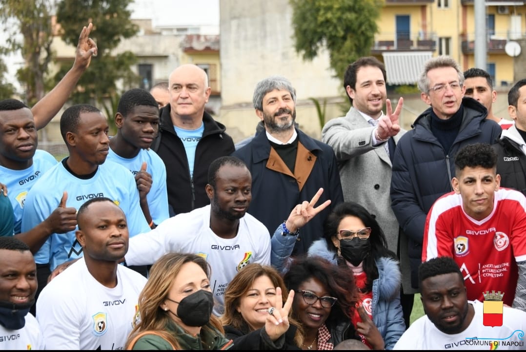 Per la prima volta, nello stesso campo, giovani cittadini migranti rappresentanti di diciannove squadre internazionali, si sono sfidate sabato 19 e domenica 20 marzo 2022, in prossimità della giornata internazionale contro le discriminazioni razziali del 21 marzo, contro la formazione dei parlamentari italiani, una squadra espressione della Polizia di Stato, del Tribunale di Napoli e di due ordini professionali campani (quello dei medici e quello degli avvocati), per vincere un’unica sfida di solidarietà: dare tutti insieme “Un calcio al razzismo”.