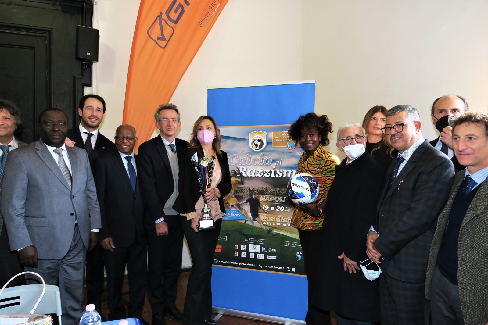 Un assist alla pace e alla speranza. Parte da Napoli il Mundialito delle comunità nazionali residenti in città: una grande manifestazione unica nel suo genere, fortemente voluta e organizzata dal Console della Repubblica Democratica del Congo, Angelo Melone, in collaborazione con l’assessorato allo sport del Comune di Napoli e dodici consolati. Per la prima volta, nello stesso campo, giovani cittadini migranti rappresentanti di diciannove squadre internazionali, si sfideranno contro la formazione dei parlamentari italiani, una squadra espressione della Polizia di Stato, del Tribunale di Napoli e di due ordini professionali campani (quello dei medici e quello degli avvocati), per vincere un’unica sfida di solidarietà: dare tutti insieme “Un calcio al razzismo”. Questo il titolo del significativo torneo di calcio, che in due giorni, sabato 19 e domenica 20 marzo 2022, in prossimità della giornata internazionale contro le discriminazioni razziali del 21 marzo, porterà nello Stadio Caduti di Brema del quartiere di Barra la bellezza dello sport.