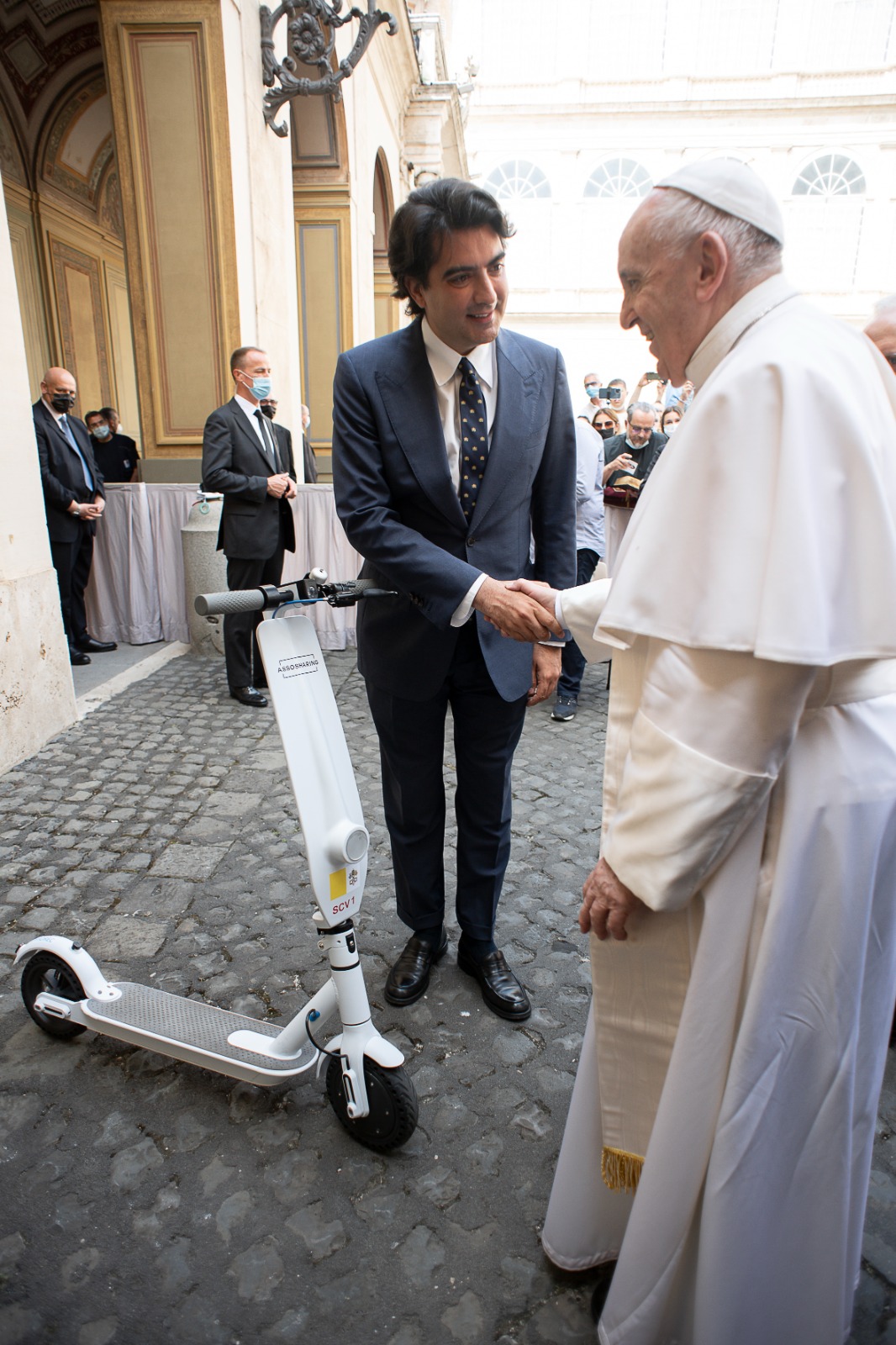 Un monopattino in dono a Papa Francesco da parte di Assosharing