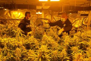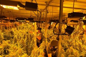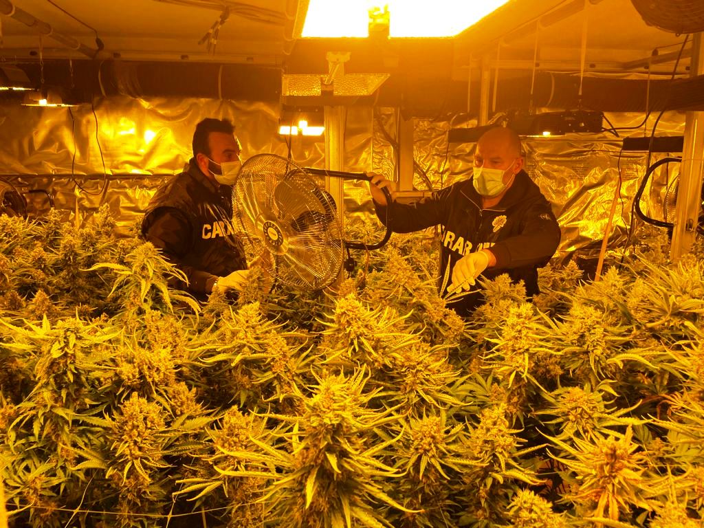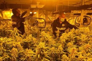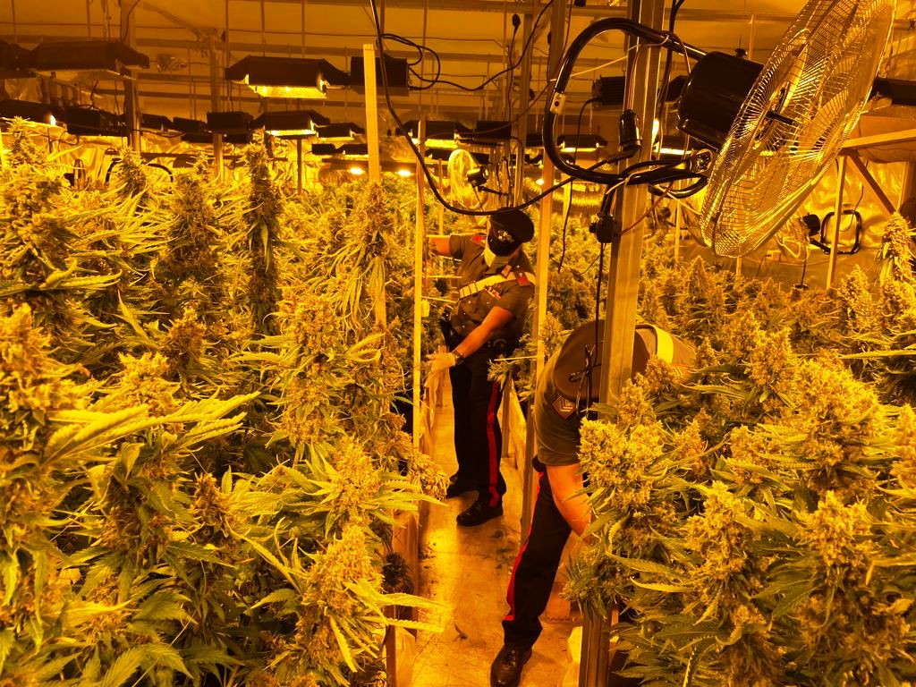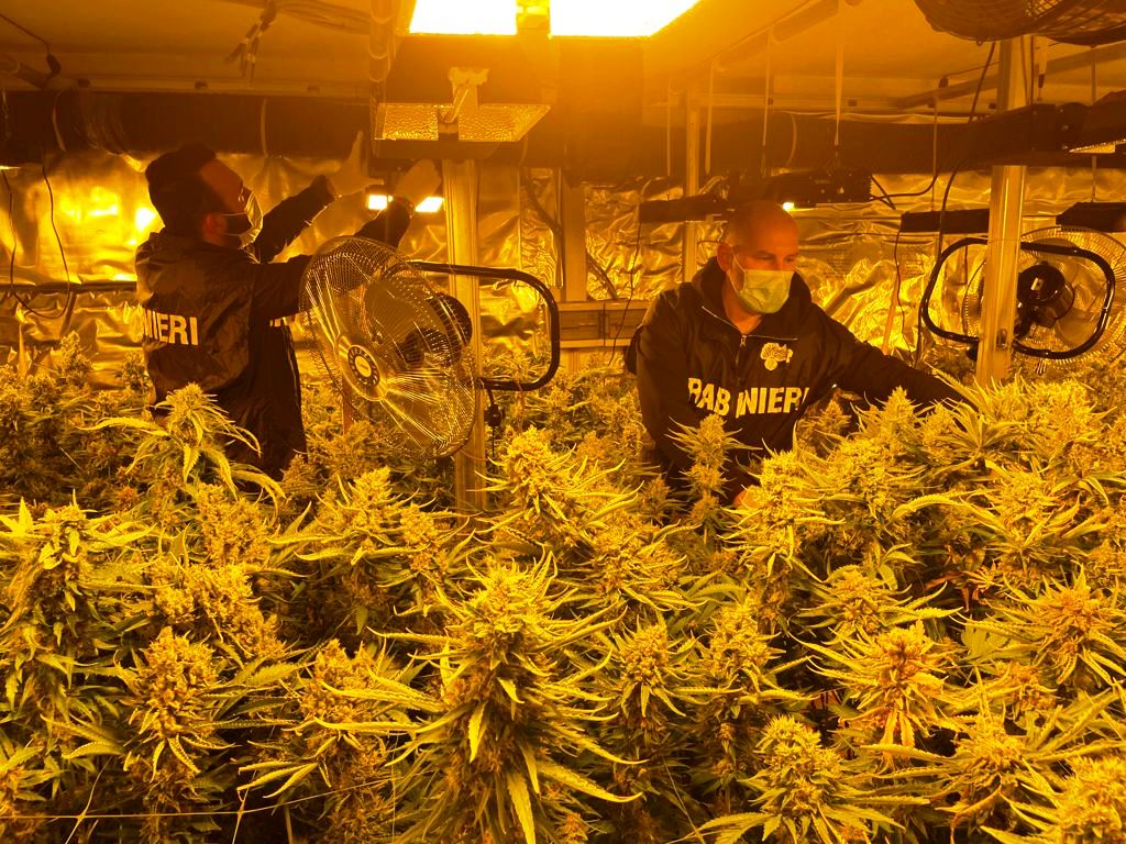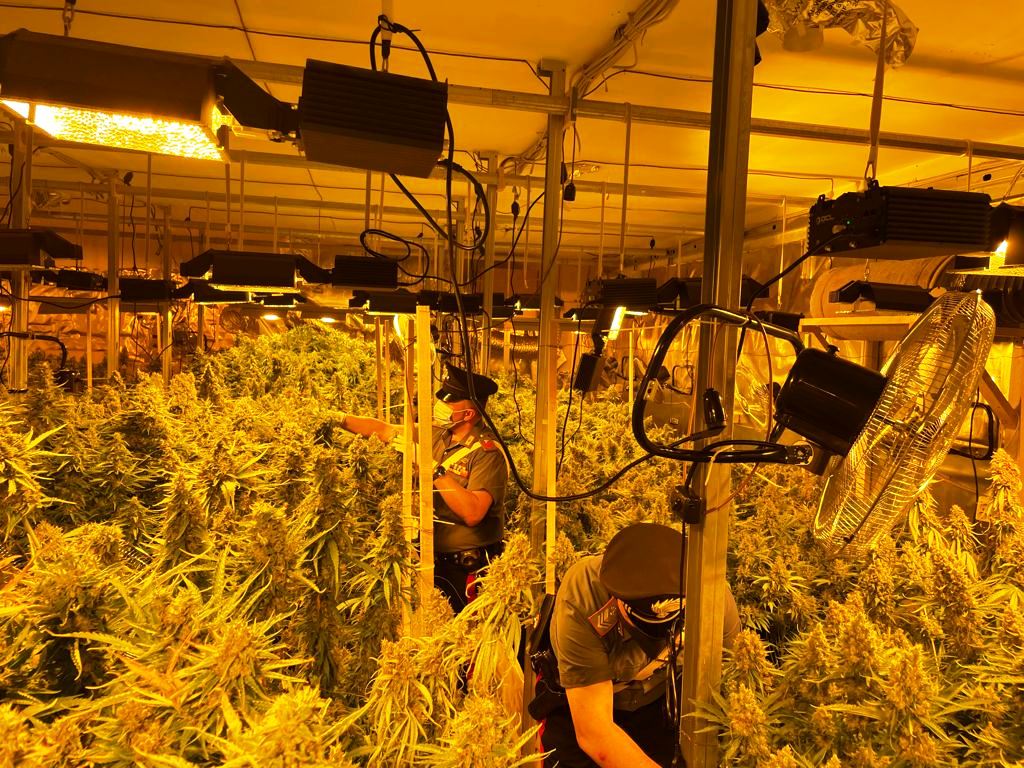 Decisi quindi a verificare cosa si nascondesse all’interno dello stabile, nella stessa serata, i Carabinieri vi hanno fatto accesso in forze, scoprendo una vasta piantagione di cannabis dell’estensione di circa 400 mq. Nella circostanza, inoltre, venivano fermati e arrestati un cittadino italiano ed un tunisino, rispettivamente di 51 e 47 anni, intenti a custodire la struttura. Nel capannone, i Carabinieri hanno rilevato la presenza di due vasti locali, entrambi perfettamente attrezzati con sistemi di ventilazione ed illuminazione, nonché con particolari attrezzature per la coltivazione, cosiddetta idroponica, per un valore complessivo stimato in circa 300.000 euro di materiali. Più in dettaglio, in un primo locale la coltivazione era stata da poco estirpata e verosimilmente caricata sul furgone precedentemente fermato, mentre in un secondo ambiente sono state rinvenute ben 544 piante di cannabis, di altezza variabile tra i 150 e 200 cm, in piena fioritura. Tutto d’intorno, i militari hanno poi raccolto altri 6 chilogrammi di sostanza già essiccata. L’operazione condotta dai Carabinieri ha consentito quindi di smantellare un grosso centro di produzione di cannabis, che, collocata sul mercato, avrebbe potuto fruttare quasi un milione di euro. L’attività in parola è nata da una convergenza informativa tra i militari della Compagnia Carabinieri di Pomezia, che da qualche giorno, nel corso dei propri servizi preventivi, osservavano il sito, attirati da un continuo via vai di mezzi e persone sospette, ed i Carabinieri della Sezione di P.G. della Procura di Perugia, i quali, sul proprio territorio, avevano avuto il sentore che parte della marijuana smerciata potesse provenire proprio da Pomezia. I cinque uomini tratti in arresto in flagranza di reato sono stati trattenuti presso le camere di sicurezza della Compagnia di Pomezia in attesa di essere trasferiti presso le strutture penitenziarie per la convalida da parte dell’Autorità Giudiziaria di Roma e Velletri.