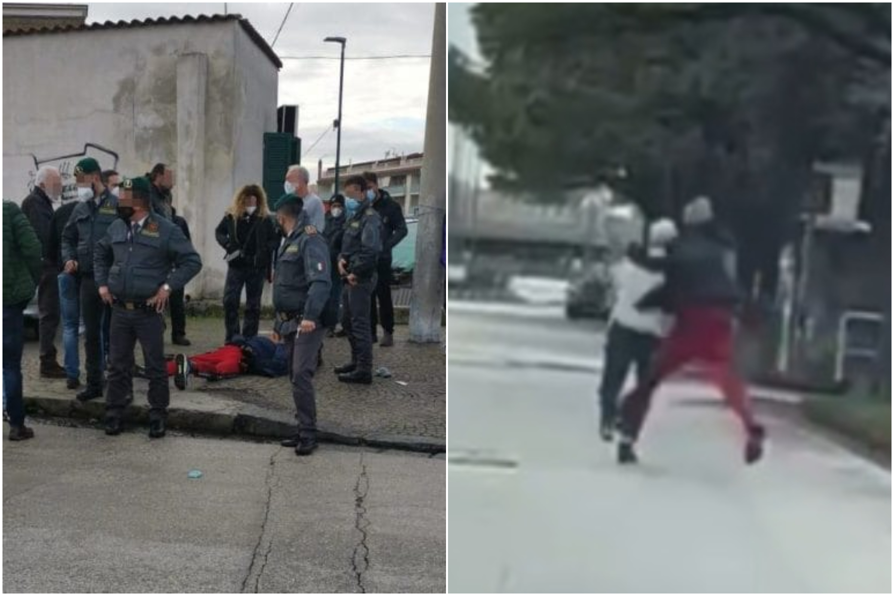 Dal video pubblicato dalla pagina social Welcome to Favelas, si vede l’uomo in stato confusionale che corre in strada armato di coltello e inseguito da alcuni finanzieri in borghese. Dopo aver tentato di accoltellare un militare, sono stati esplosi in totale, almeno da quanto emerge dal filmato, cinque colpi d’arma da fuoco, alcuni dei quali hanno ferito l’uomo alle gambe.