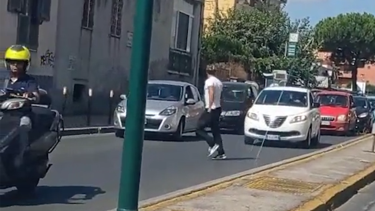 “Hai bisogno di aiuto?”, gli chiedono dall’auto. Ma lui non risponde e continua a muoversi in modo sconclusionato tra le auto che fortunatamente riescono a schivarlo. “Era un ragazzo alla guida di un Atos grigia. Non stava bene. Ha abbandonato l’auto di traverso e correva tra le auto era in stato confusionale sono arrivati i carabinieri e hanno cercato di calmarlo”, scrive su Facebook un uomo che ha assistito alla scena.