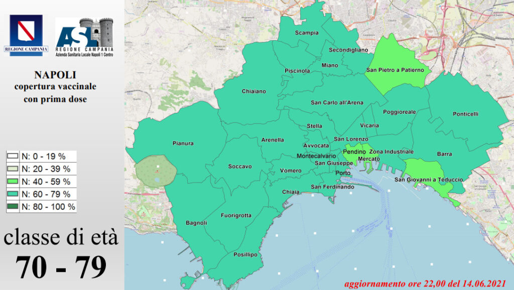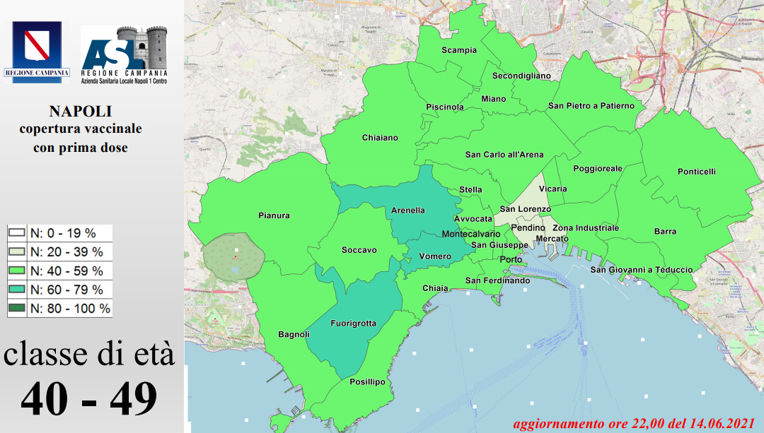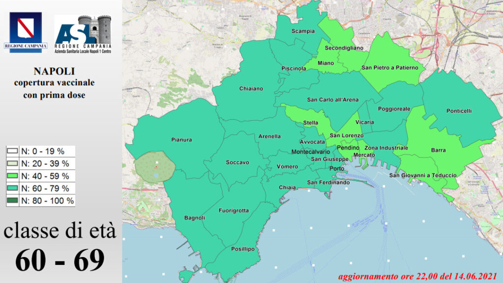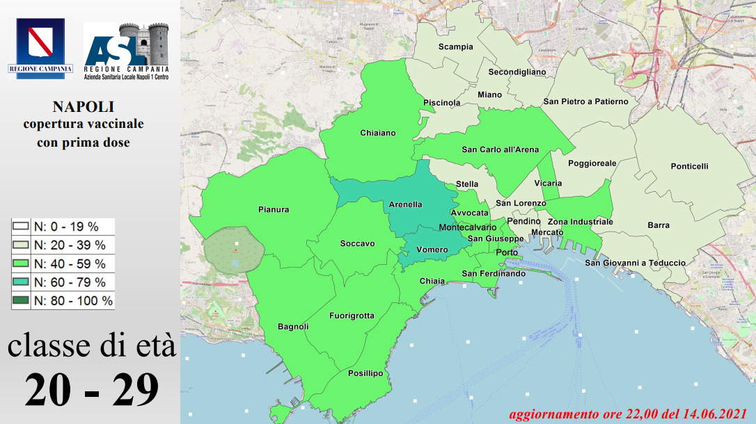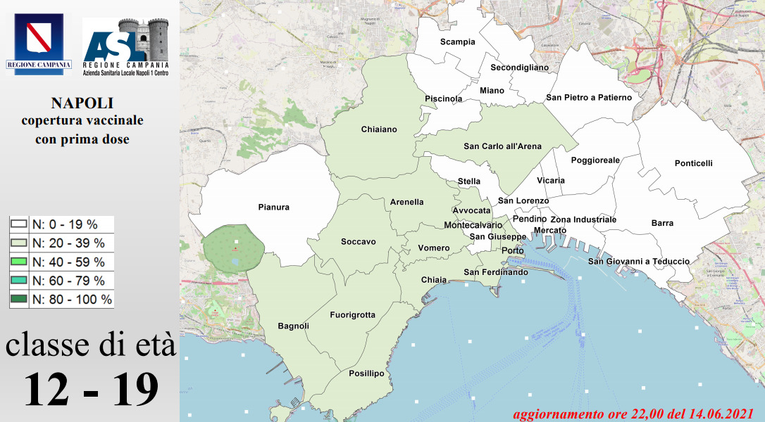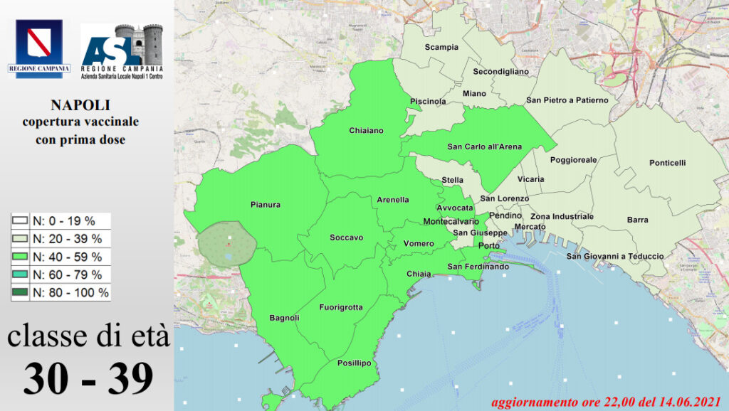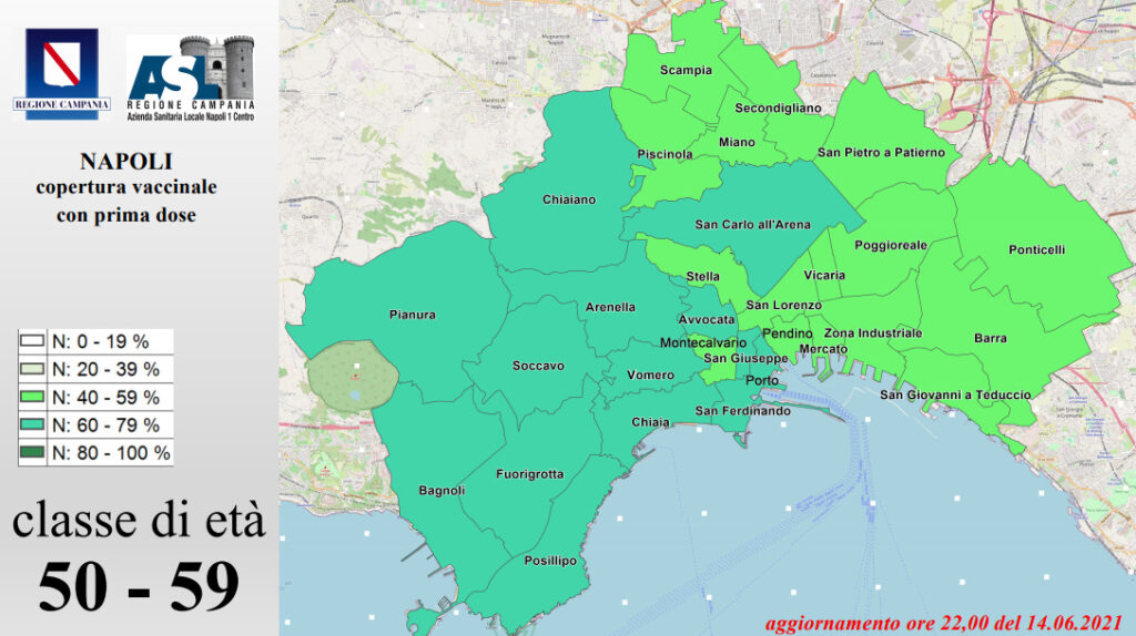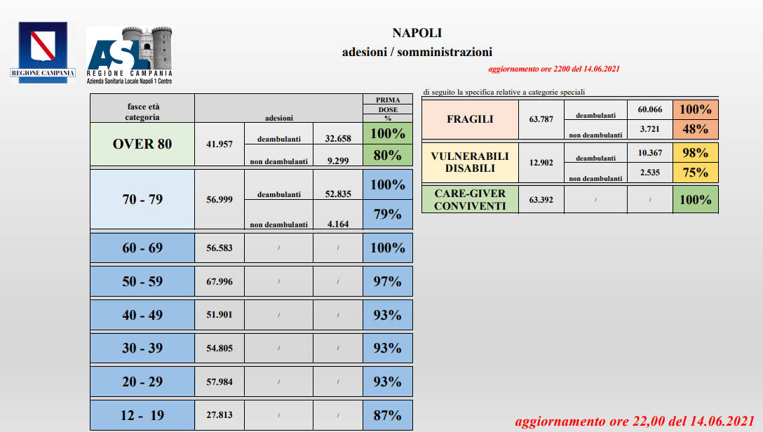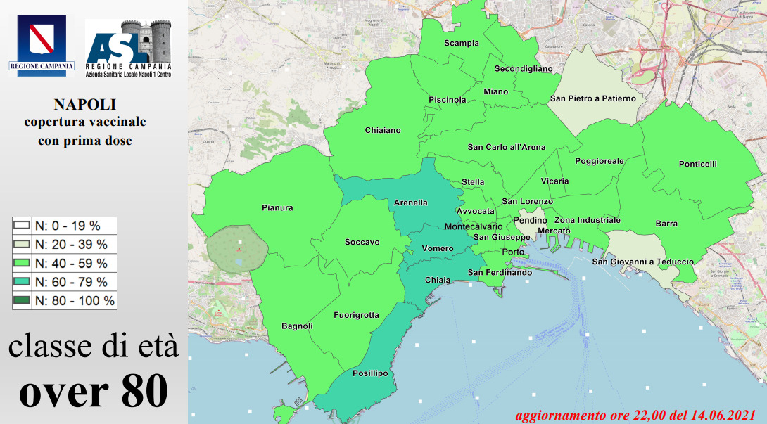 Ai dati estremamente positivi che riguardano la vaccinazione di quanti volontariamente hanno aderito alla campagna si aggiungono però i dati che mettono in luce come a Napoli solo il 61% dei residenti (popolazione residente al gennaio 2021) abbia scelto di aderire alla campagna vaccinale. Un approfondito studio della copertura vaccinale con prima dose stratificata per classe di età e quartiere di residenza ha evidenziato infatti una sensibile differenza tra quartieri di Napoli, ed è proprio per questo che già dai prossimi giorni il centro vaccinale itinerante dell’ASL Napoli 1 Centro sarà presente nei quartieri nei quali l’adesione risulta sotto il 40% per invitare all’adesione ed effettuare l’immediata somministrazione.