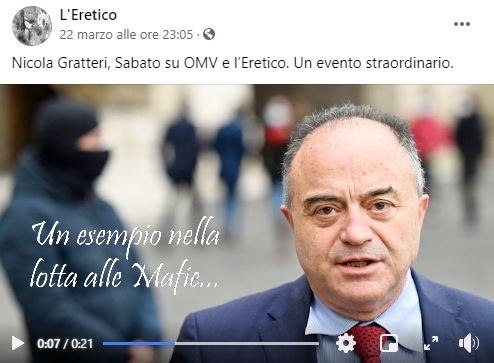 Un supporto tale alle strampalate teorie degli autori da spingere Gratteri ad essere ospite d’onore del dibattito che terranno i due autori sulla loro pagina Facebook “L’Eretico” sabato prossimo.
