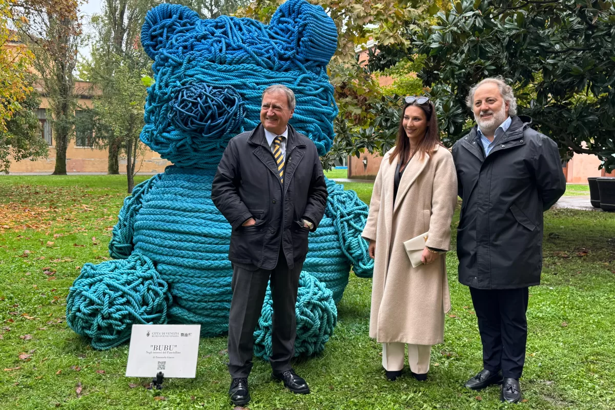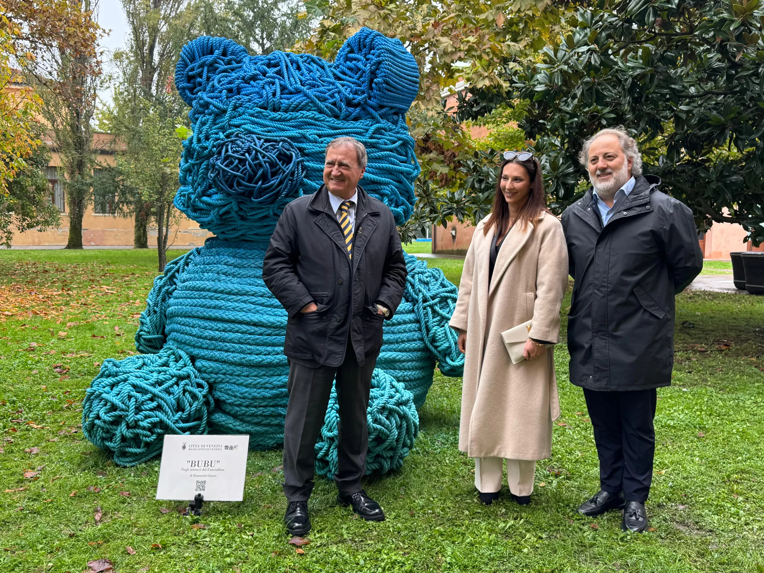 Il ‘bubu negli intrecci del fanciullino’ entra a far parte delle raccolte d’arte contemporanea comunali gestite dalla fondazione musei civici di Venezia. L’imponente scultura d’ora in avanti sarà ammirabile nel parco dell’isola di San Servolo. Alta 2,55 metri, con una larghezza di 2,45 metri e dal peso complessivo di circa due tonnellate, è stata realizzata dall’artista Emanuela Giacco nel 2023 e raffigura un orsacchiotto, a simboleggiare l’innocenza, la meraviglia e l’impegno dei bambini verso il futuro e la cura del mondo, così come testimoniano i materiali utilizzati: il ‘bubu’ è infatti interamente composto in cime nautiche recuperate, con struttura in ferro zincato, finitura in resina epossidica e verniciatura acrilica. Materia prima abilmente modellata dall’artista che avrà nuova vita in una delle più importanti oasi verdi veneziane: donata al Comune, è già esposta assieme ad altre opere d’arte contemporanea in un’area aperta al pubblico. La conservazione e valorizzazione del Bubu avverranno per il tramite della fondazione musei civici di Venezia, con la possibilità per il comune di valutarne in futuro un’esposizione in altro contesto cittadino.