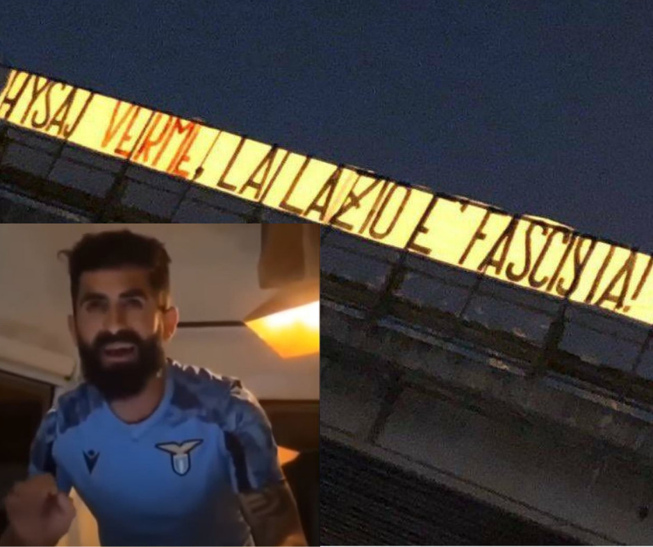 Lo striscione con tanto di firma Ultras Lazio, corredato dal fascio littorio stilizzato, è apparso sul ponte di Corso Francia a Roma. Nel mirino c’è il calciatore neoacquisto dei biancocelesti, Elseid Hysaj, finito al centro dell’attenzione della tifoseria per aver cantato, durante una cena in ritiro, la canzone popolare dei partigiani che lottavano contro il nazifascismo e il regime di Benito Mussolini. Bella Ciao è il motivo della sollevazione popolare biancoceleste contro l’ex difensore del Napoli. Il club lo difende con una nota ufficiale della società di Claudio Lotito: “Basta strumentalizzazioni”, ma la bufera non si arresta. Hysaj aveva cantato la canzone della resistenza, che conosceva, secondo alcune spiegazioni poi trapelate sul web, a causa della sua passione per la serie tv La casa di carta.